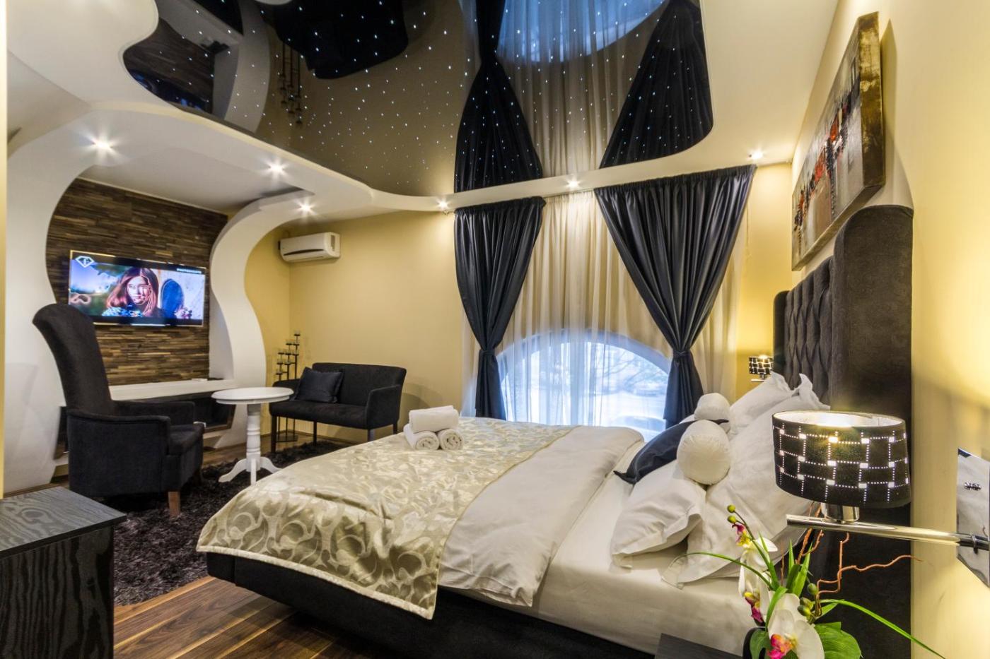Deluxe Double Room with Spa Bath and Sauna. Guests will have a special experience as this double room features a hot tub and a sauna. The spacious double room offers air conditioning, soundproof walls, as well as a private bathroom featuring a bath and a shower. The unit offers 1 bed.