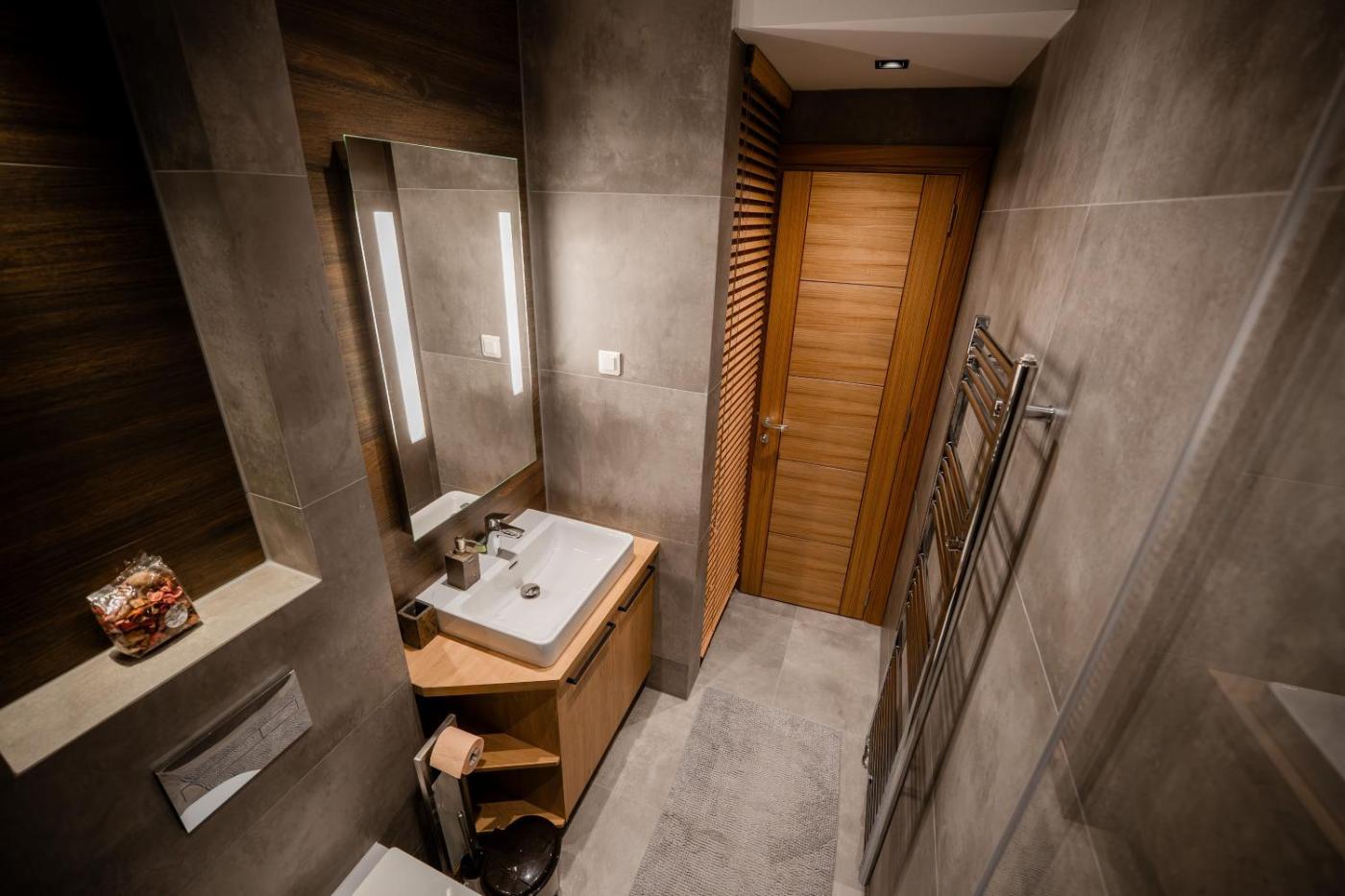 Deluxe Apartment. This apartment offers a sauna. This apartment comprises 1 living room, 1 separate bedroom and 1 bathroom with a shower and free toiletries. The well-equipped kitchen features a refrigerator, a dishwasher and kitchenware. Featuring a terrace with city views, this apartment also provides a coffee machine and a flat-screen TV. The unit offers 2 beds. ;