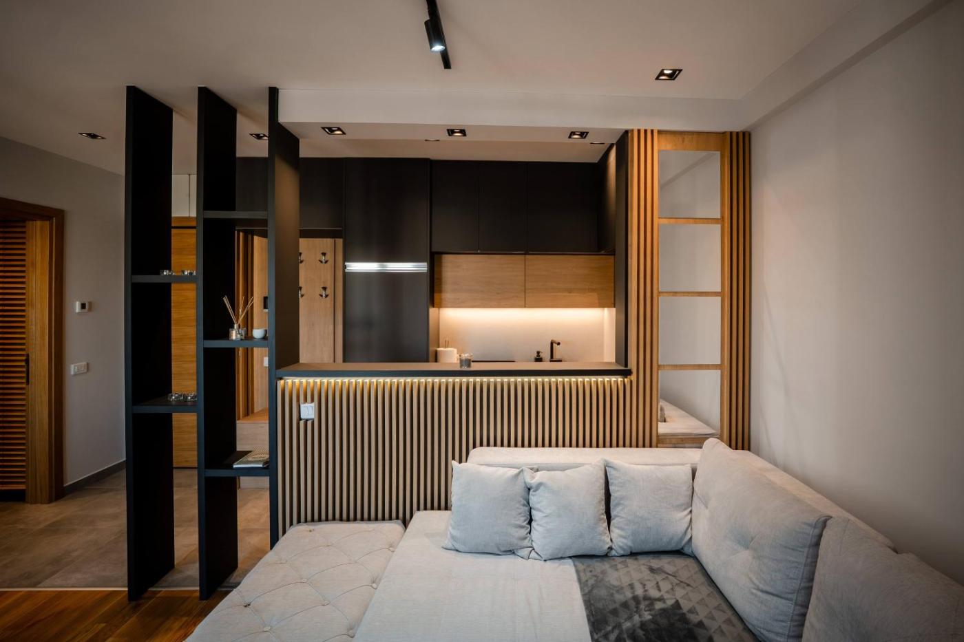 Superior Apartment. This apartments special feature is the sauna. This apartment consists of 1 living room, 1 separate bedroom and 1 bathroom with a shower and free toiletries. A kitchen equipped with a refrigerator, kitchenware and an electric kettle is available for cooking and storing food. Featuring a terrace with city views, this apartment also provides a wardrobe and a flat-screen TV. The unit offers 2 beds. ;